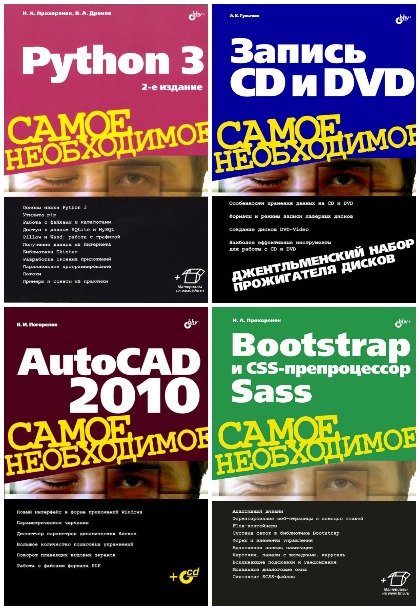 «Самое необходимое» - это практические руководства для тех, кто начинает работать с Microsoft Excel, Microsoft Office Word, рассмотрены инструменты программы Adobe Photoshop CC и основные приемы работы с ними, описан базовый синтаксис языка Python, рассказывается о работе в операционной системе Windows.